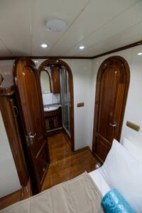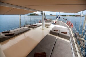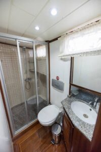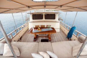 Outside equipment; anchor, outside shower, swimming ladder, dining table, canopy, sprayhood, Transfer Boat.