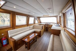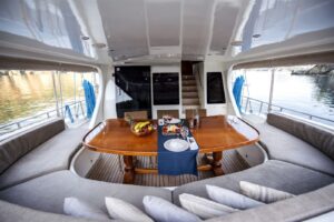 Outside equipment; anchor, outside shower, swimming ladder, dining table, canopy, sprayhood, Transfer Boat.