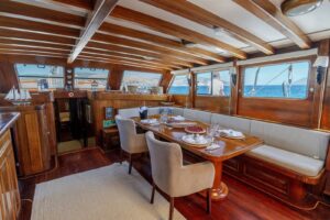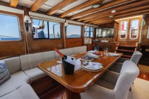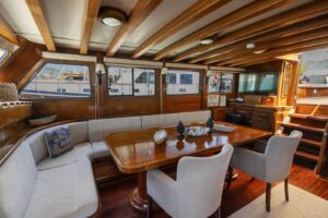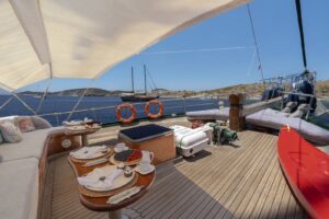 Outside equipment; anchor, outside shower, swimming ladder, dining table, canopy, sprayhood, Transfer Boat.