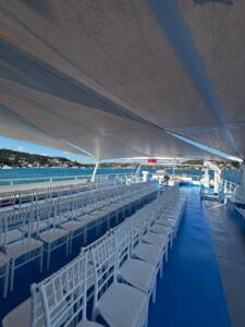 Wedding on yacht come true in Istanbul with our 38-meter luxury vessel P171. Whether you're planning a wedding on a boat, a lavish wedding on a ship, or an exclusive corporate event, this stunning yacht offers space for up to 200 guests.