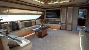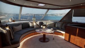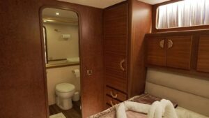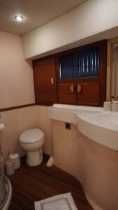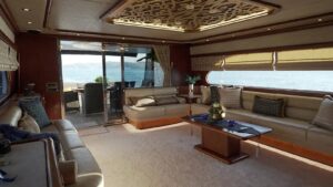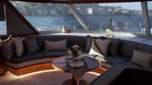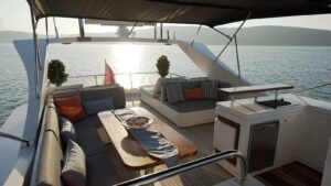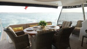 Outside equipment; anchor, outside shower, swimming ladder, dining table, canopy, sprayhood, Transfer Boat.